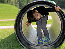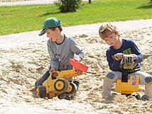 Gemeinsam verbringen wir sehr viel Zeit an der frischen Luft. Die Einrichtung verfügt über einen großen Spielplatz, der viele "natürliche" Spiel- und Fördermöglichkeiten bietet (große Bäume, Baumstämme zum Balancieren, Steine und Stöcker zum Konstruieren).