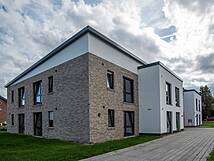 Durch die räumlich getrennten Kleingruppen, welche jeweils über ein zentrales Treppenhaus erreichbar sind, entsteht für das gesamte Gebäude der Charakter eines „Mehrfamilienhauses“.