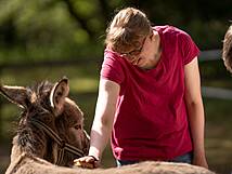 Die Wohneinrichtung Hof Winkelmann hat Charme: Ein altes Bauernhaus mit gemütlich ausgebauter Diele im hofeigenen Wald gelegen, tiergestützte Begegnungen mit Kaninchen, Eseln, Hühnern, einem Hund, eine Wohnatmosphäre zum Zuhause-Fühlen, ein gemeinsam, über die Jahre liebevoll gestaltetes Gelände und nette Mitarbeiter/innen. Das ist die besondere Wohnform Hof Winkelmann.