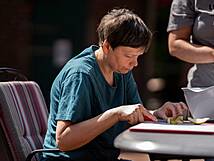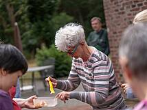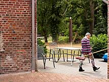 In diesem überschaubaren ländlichen Wohnraum bietet der Hof Winkelmann erwachsenen Menschen mit geistiger Beeinträchtigung eine dauerhafte Lebensmöglichkeit. Hier kann jede/r Bewohner/in das eigene Zimmer nach eigenen Wünschen gestalten. Insgesamt finden hier 15 Personen ihren ganz individuellen und nötigen Freiraum, um an ihren Bedürfnissen und Fähigkeiten orientiert, einen bewegten Alltag zu gestalten. Ergänzende tagesstrukturierende Angebote beziehen sich auf Alltagssituationen im Haushalt, auf die Herstellung der täglichen Mahlzeiten, sowie auf abwechslungsreiche Garten- und Holzwerkstatt-Tätigkeiten. Ein Hauptaugenmerk liegt in der Pflege und Versorgung der Tiere. Die Bewohner/innen erleben sich selber in der Versorgerrolle und die tierischen Assistenten geben eine natürliche Tagesstruktur vor, die Sicherheit und Gebrauchtwerden vermittelt. Jede/r Bewohner/in trägt mit dem eigenen Tun – auch wenn es scheinbar geringfügige Beiträge sind – für sich sichtbar und nutzbringend zum Gemeinschaftsleben bei.